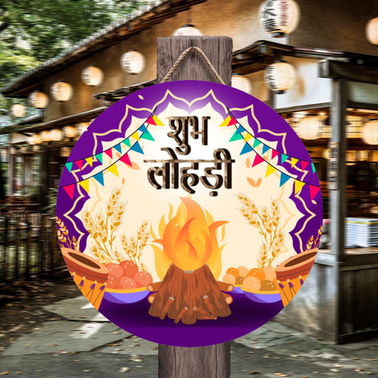 Lohri Celebration Wooden Door Hanger – "Happy Lohri शुभ लोहड़ी!"