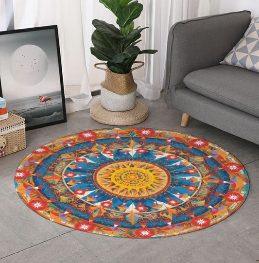 Makar Sankranti Celebration Rangoli pattern foldable floor mat - Sun & Kites Mandala