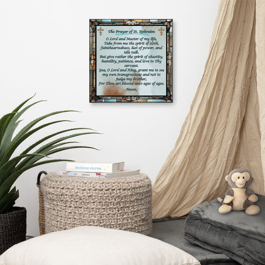Orthodox Christmas Canvas Wall Art – Prayer of Saint Ephraim, Stained Glass Design