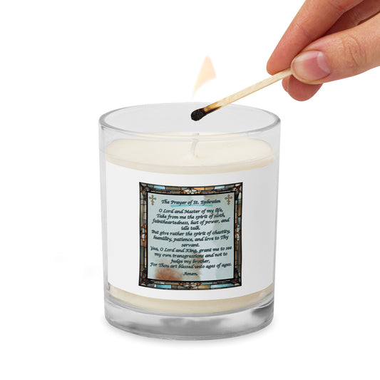 Orthodox Christmas Glass Jar Soy Wax Candle – Prayer of Saint Ephraim, Stained Glass Design