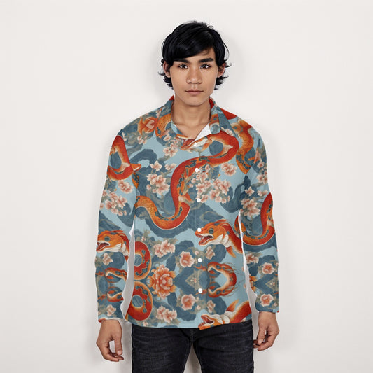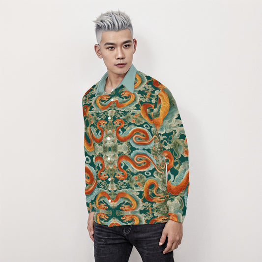 PGP Holiday Men's Long Sleeve Shirt | Blossom Serpent Orange & Blue | Prosperity & Growth