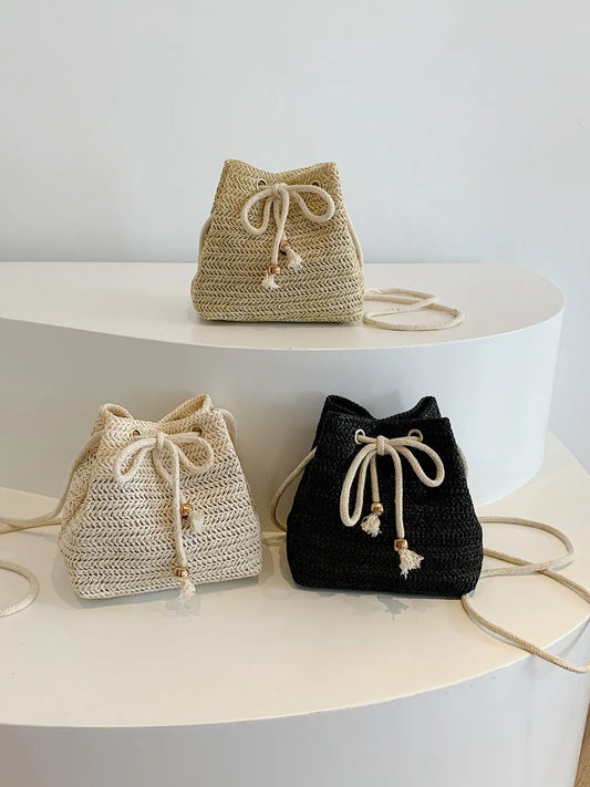 PGP Holiday | Soft Girl Aesthetic Line | Straw Braided Drawstring Bucket Bag