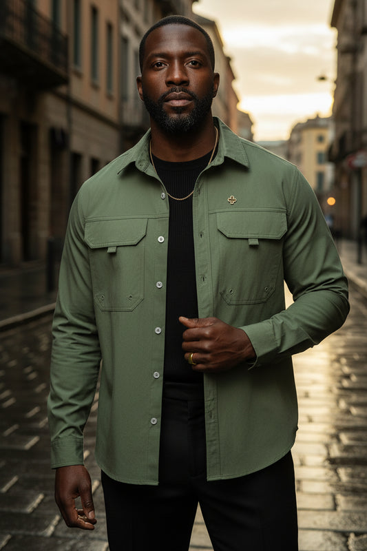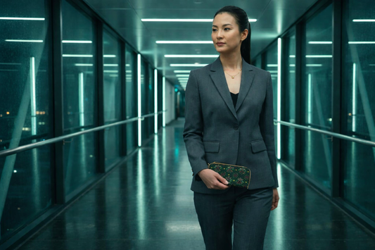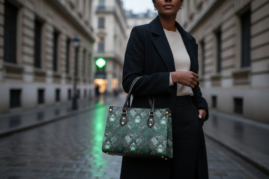 Rooted in jewel-toned greens and refined neutrals, the aesthetic draws from Irish atmosphere and city-night polish—reinterpreted for a contemporary wearer who is tired, uncertain, and still choosing forward. Clean silhouettes, rich texture, and considered details create pieces that feel composed and capable: tailored lines, elevated sets, and subtle accents that read intentional and enduring rather than seasonal or costume.