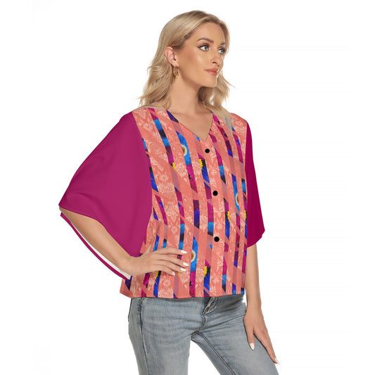 PGP Holiday Women's Bold Bloom Bat Sleeve V-neck Blouse with Four-way Stretch