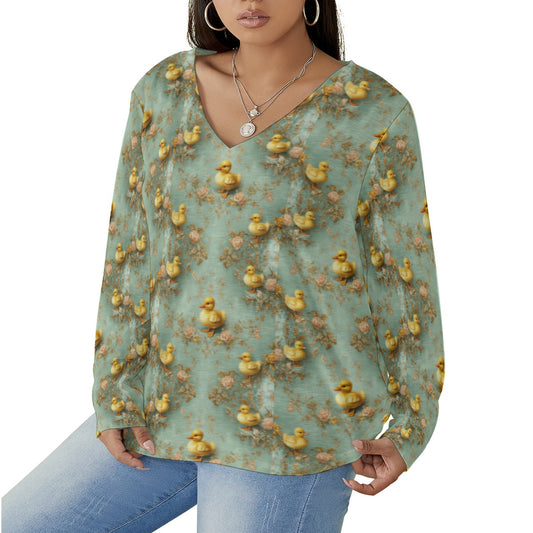 PGP Holiday Blue-Bill Charm V-Neck T-Shirt with Curved Hem (Plus Size)