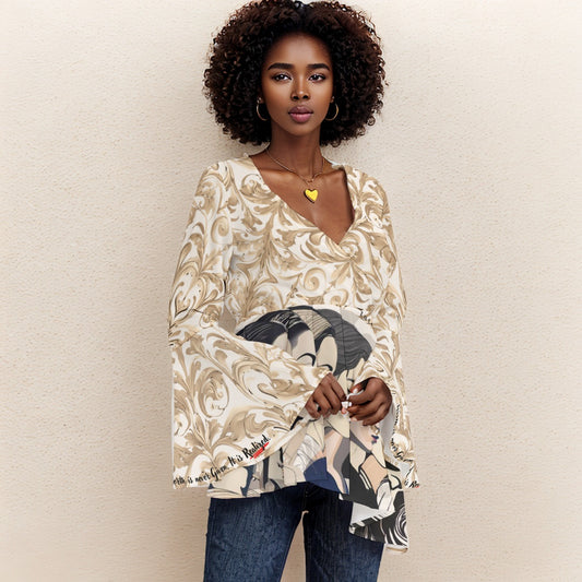 PGP Holiday Realized Flared Sleeves V-neck Blouse - Stylish Butterfly Sleeve Top for Women