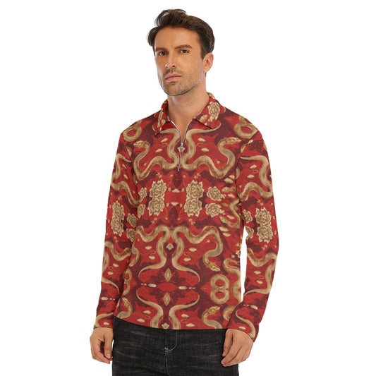 PGP Holiday Golden Serpent Lapel Shirt with Zipper Closure | Lunar New Year Elegance