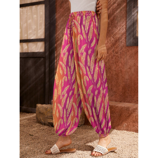 Lohri Celebration Women's Patiala Carrot Style Fit Pants with Pockets - Wheat on Vibrant Pink Ombre