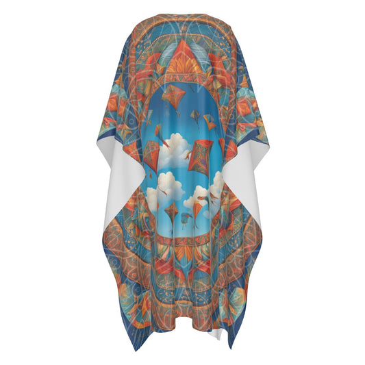 Makar Sankranti Celebration Imitation Silk V-neck Kaftan - Kite Mandala Madhubani-inspired