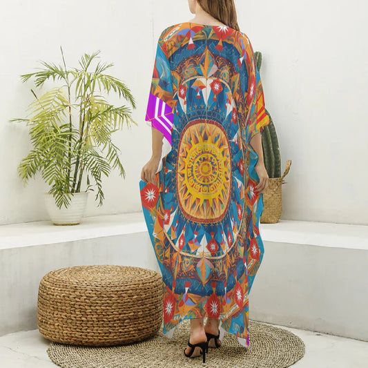 Makar Sankranti Celebration Imitation Silk V-neck Kaftan - Kite & Sun Mandala