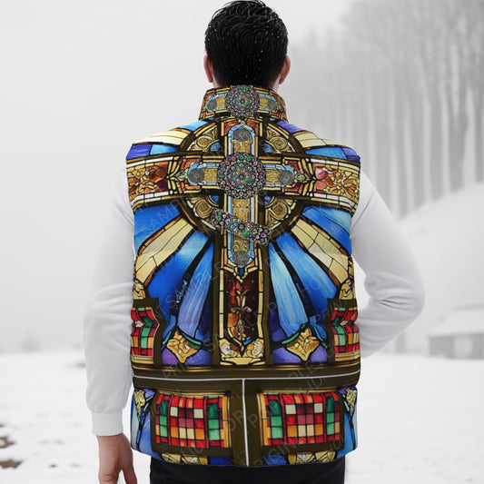 Orthodox Three-Wood Cross Stained Glass Unisex Down Vest – Warm, Windproof & Lightweight