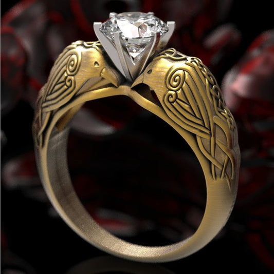 Celtic Crow Ring — Statement Totem Band, Yellow Gold | Whisper of Éire