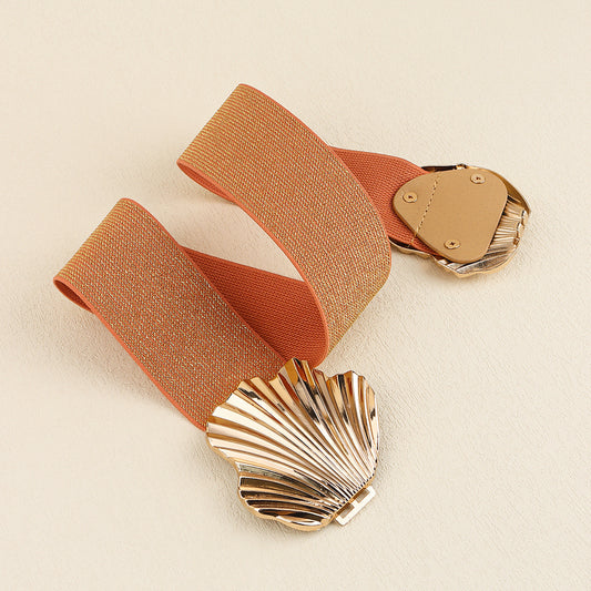 Scallop Coral Mermaidcore Elasticated Belt – Pearlescent Shell Waist Accessory