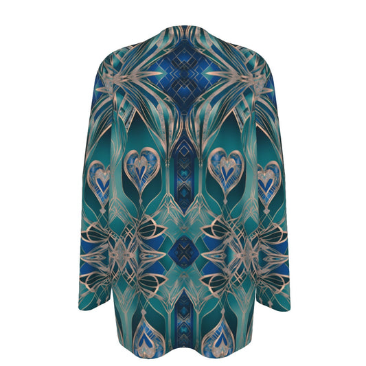PGP Holiday Eros Époque Mesh Cardigan - Aqua Teal & Gold Art Deco | Valentine's Day Style