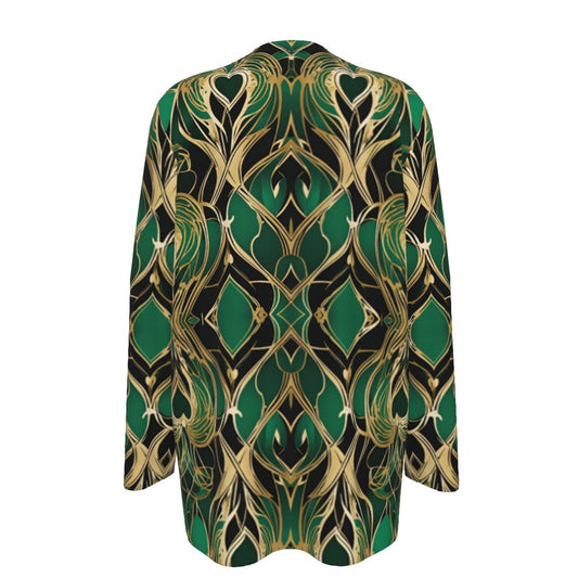 PGP Holiday Eros Époque Shawl Shirt - Emerald & Gold Art Deco Design