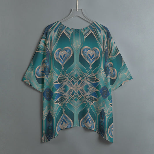 PGP Holiday Eros Époque Shawl Shirt - Aqua Teal & Gold Art Deco Design