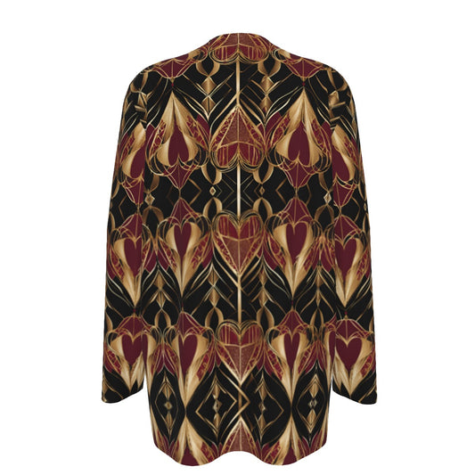 PGP Holiday Eros Époque Pocket Cardigan - Crimson & Gold Art Deco Design