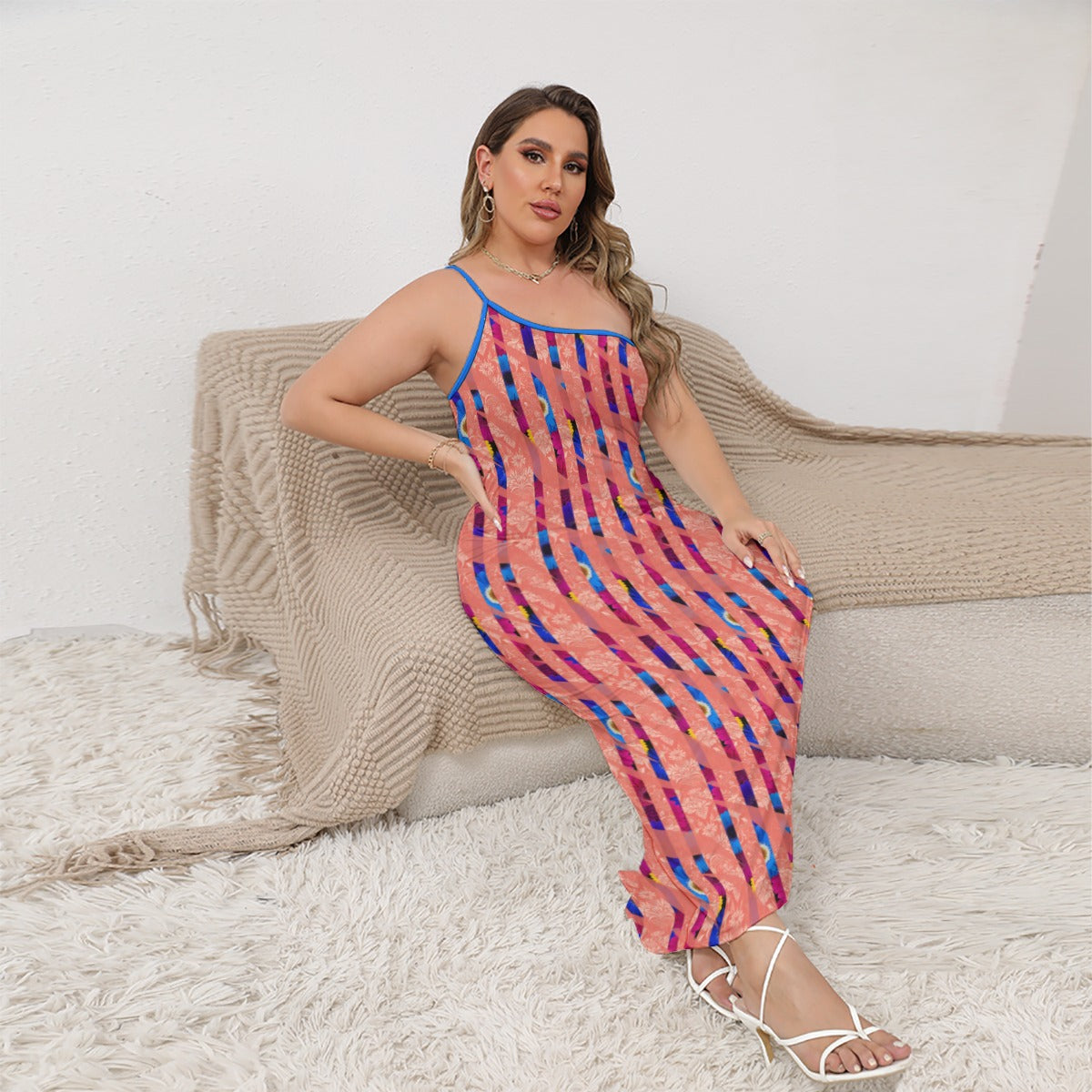 All-Over Print Women's Oblique-Shoulder Exposure Dress With Side Split (Plus Size)