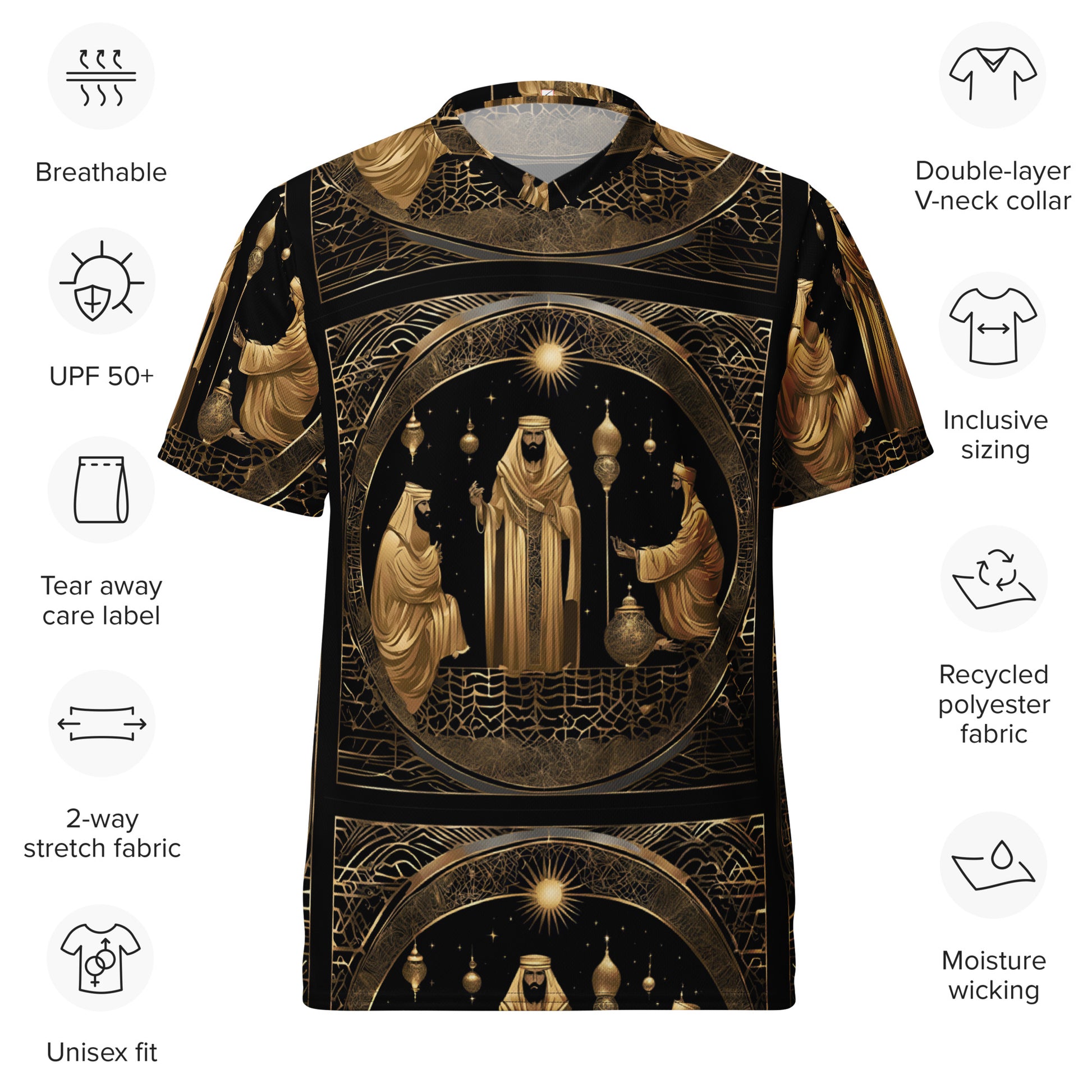 Get ready for Three Kings Day 2025 with the PGP Holiday Felis Día de Reyes Unisex Relaxed Sports Jersey. Made from 100% recycled polyester fabric, this breathable, moisture-wicking shirt features a double-layered v-neck collar for a premium sports look, combining comfort, eco-friendliness, and style to celebrate Epiphany in fashion.