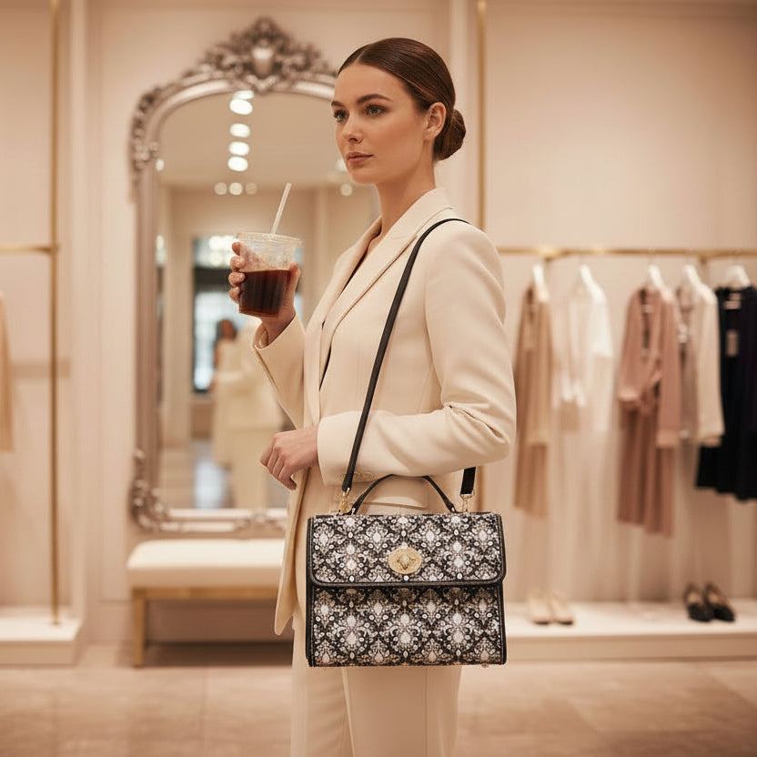 Sized to hold daily essentials—including tablets and work necessities—this bag transitions easily from professional settings to travel and everyday use. The removable, adjustable shoulder strap allows it to be carried by hand or worn crossbody, adapting to the rhythm of the day without changing its presence.