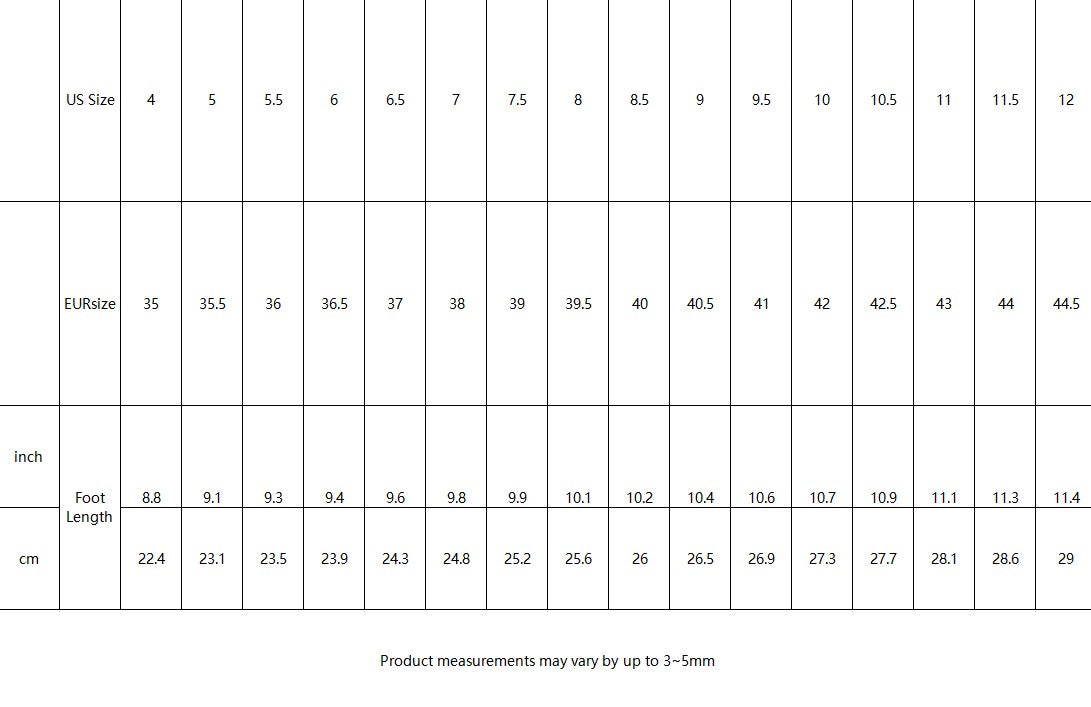 EUR Size | US Size | Insole Length(inch) | Insole Length(mm) |