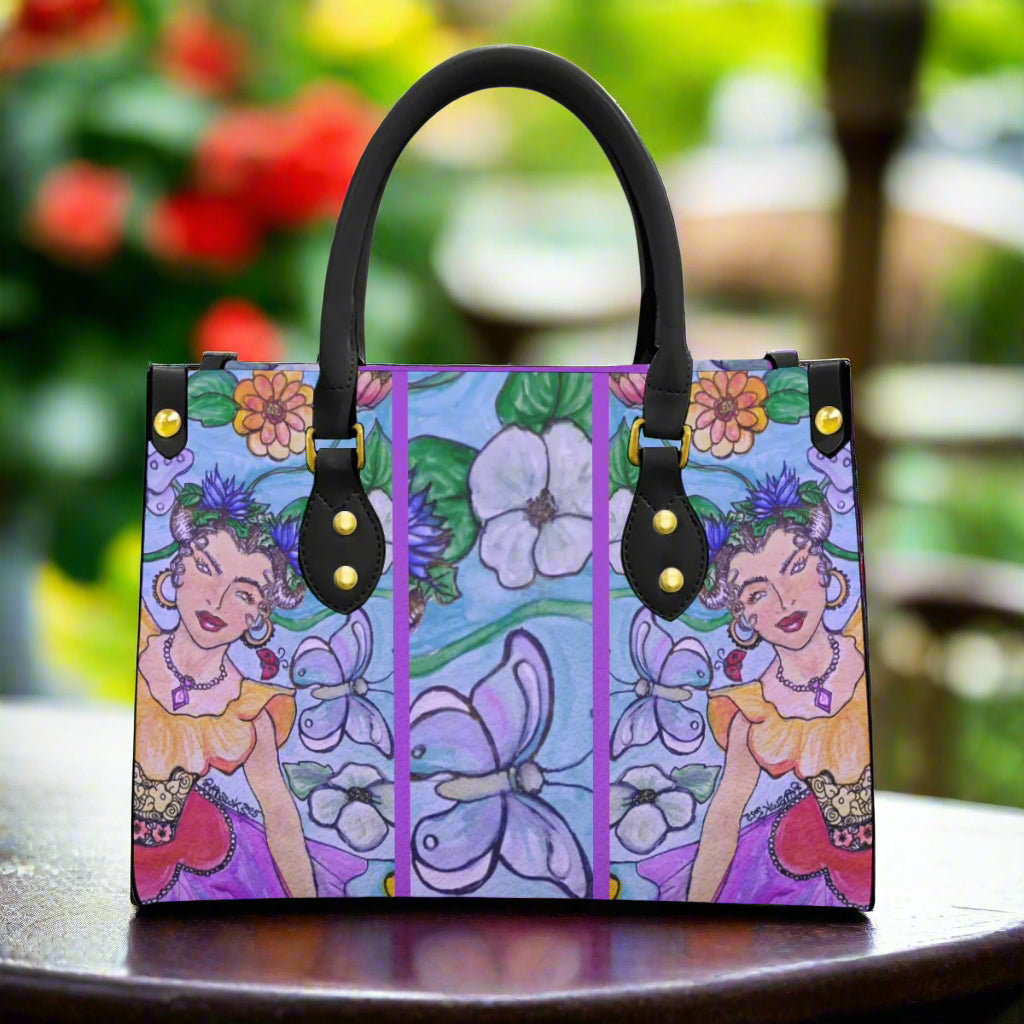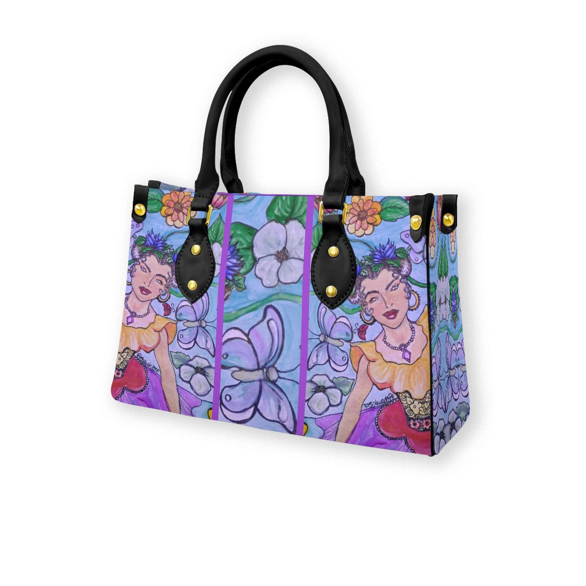 Carry your essentials in style with the Rochelle ¡Vive Mexico! Tote Bag. Made from durable PU material, this chic tote features a roomy interior with a convenient zipped inside pocket to keep your belongings secure. The sleek black handles add a bold contrast, making it the perfect everyday companion for errands, outings, or festive celebrations. The product size is 291120 cm and the material is PU with a zipped inside pocket.