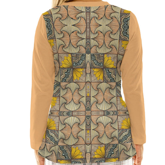 All-Over Print Women's Loose V-Neck T-Shirt With Long Sleeve