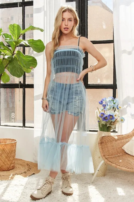 ADORA Ruffled Mesh Cover Up Dress