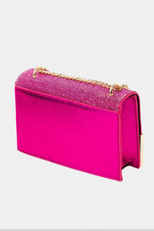 Fame Rhinestone Studded Rectangle Crossbody Bag
