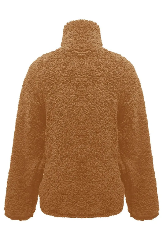 Fuzzy Snap Down Dropped Shoulder Jacket