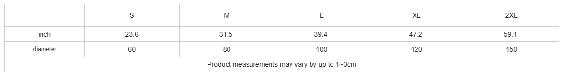 | inch | 23.6 | 31.5 | 39.4 | 47.2 | 59.1 |