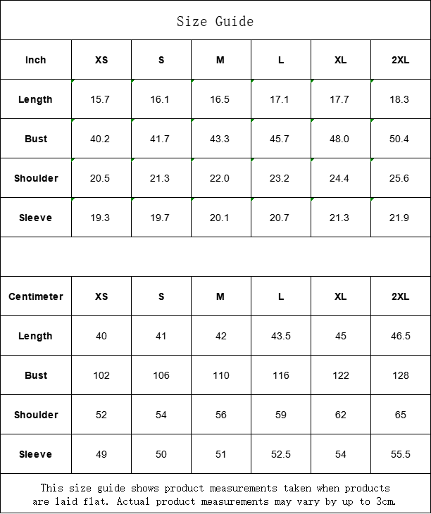 This size guide shows product measurements taken when products are laid flat. Actual product measurements may vary by up to 3cm.