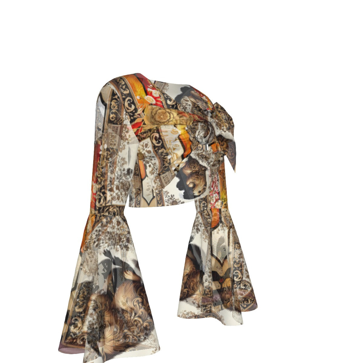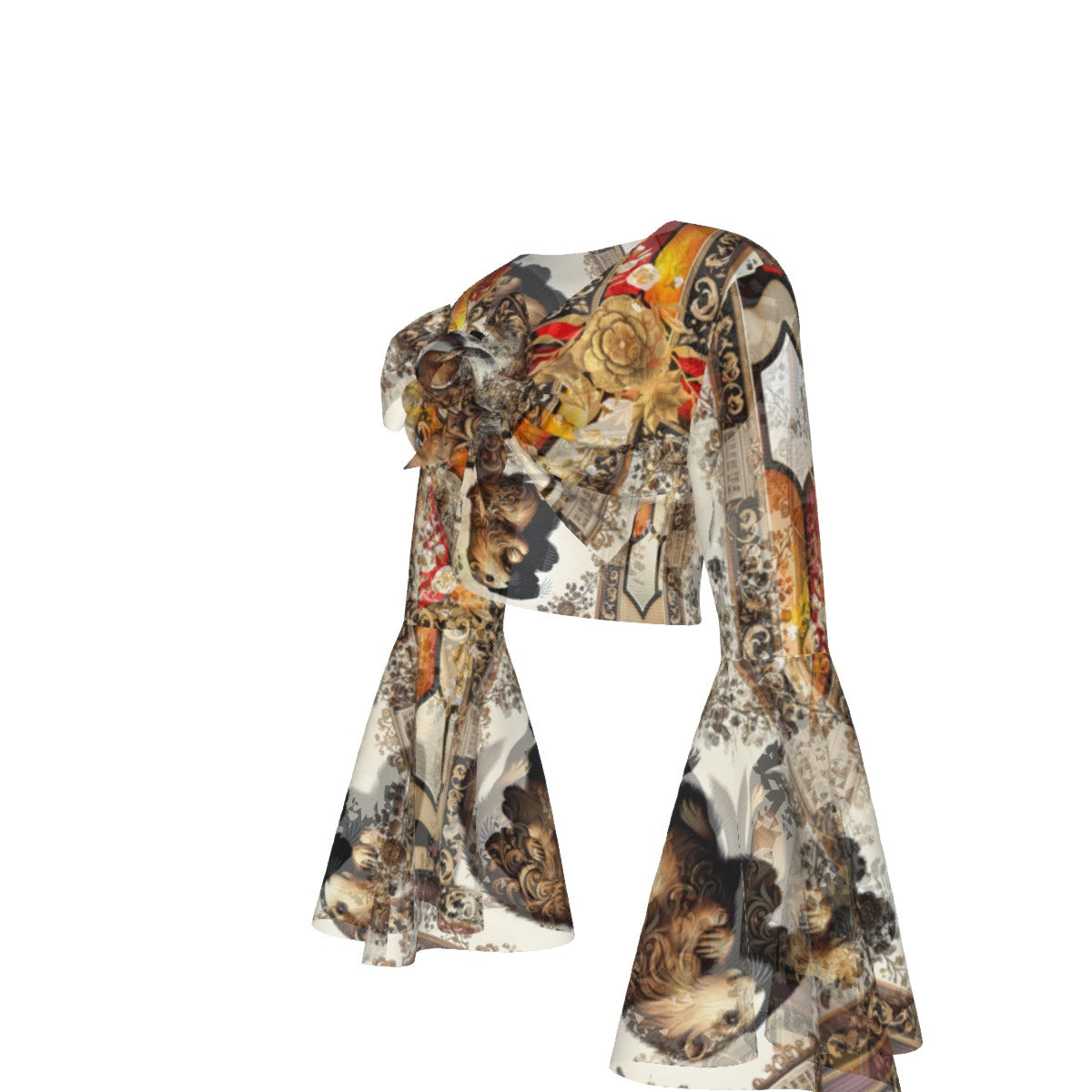 Unleash your inner charm with the PGP Holiday Groundhog Day Winters End Cropped Flared Arm Blouse! Featuring a lace-up design and bell sleeves, this mesh blouse (88% polyester, 12% spandex) exudes elegance and a mystical allure. Perfect for layering over a camisole and shorts, this chic top is ideal for summer days or adding a touch of flair to any season. 🌞❄️