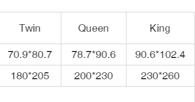 - The product size is Twin (70.9*80.7),Queen (78.7*90.6),King (90.6*102.4).