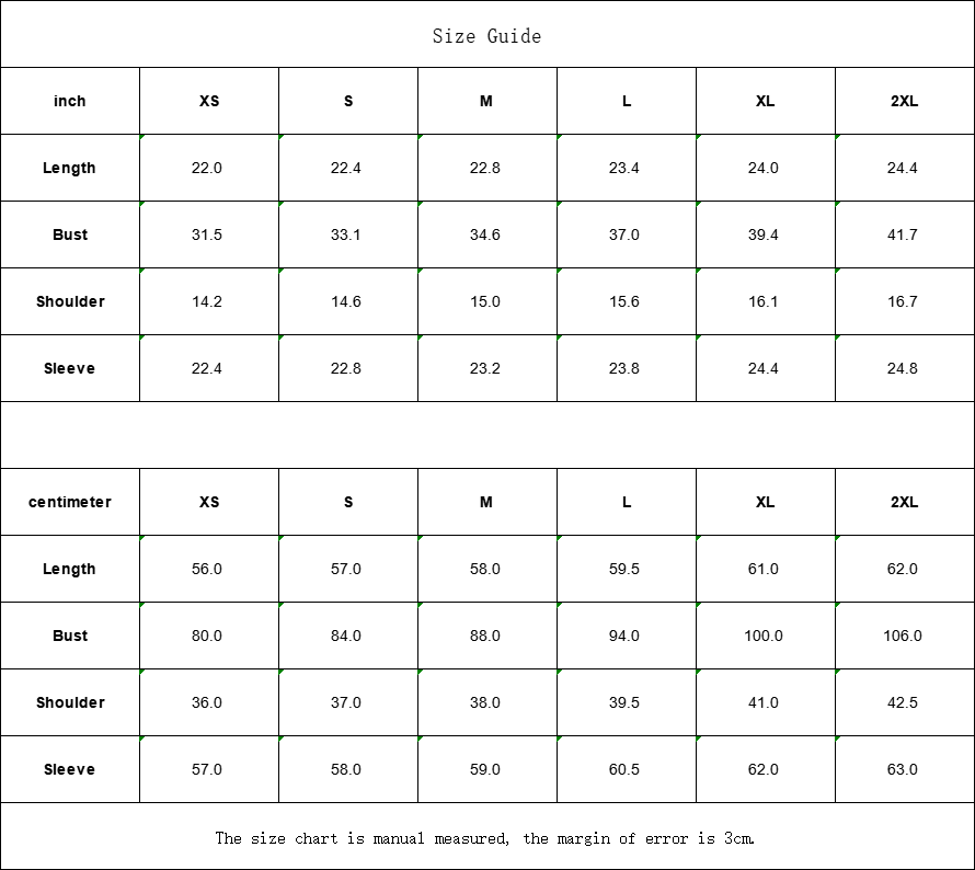Sleeve | 22.4 | 22.8 | 23.2 | 23.8 | 24.4 | 24.8 |
