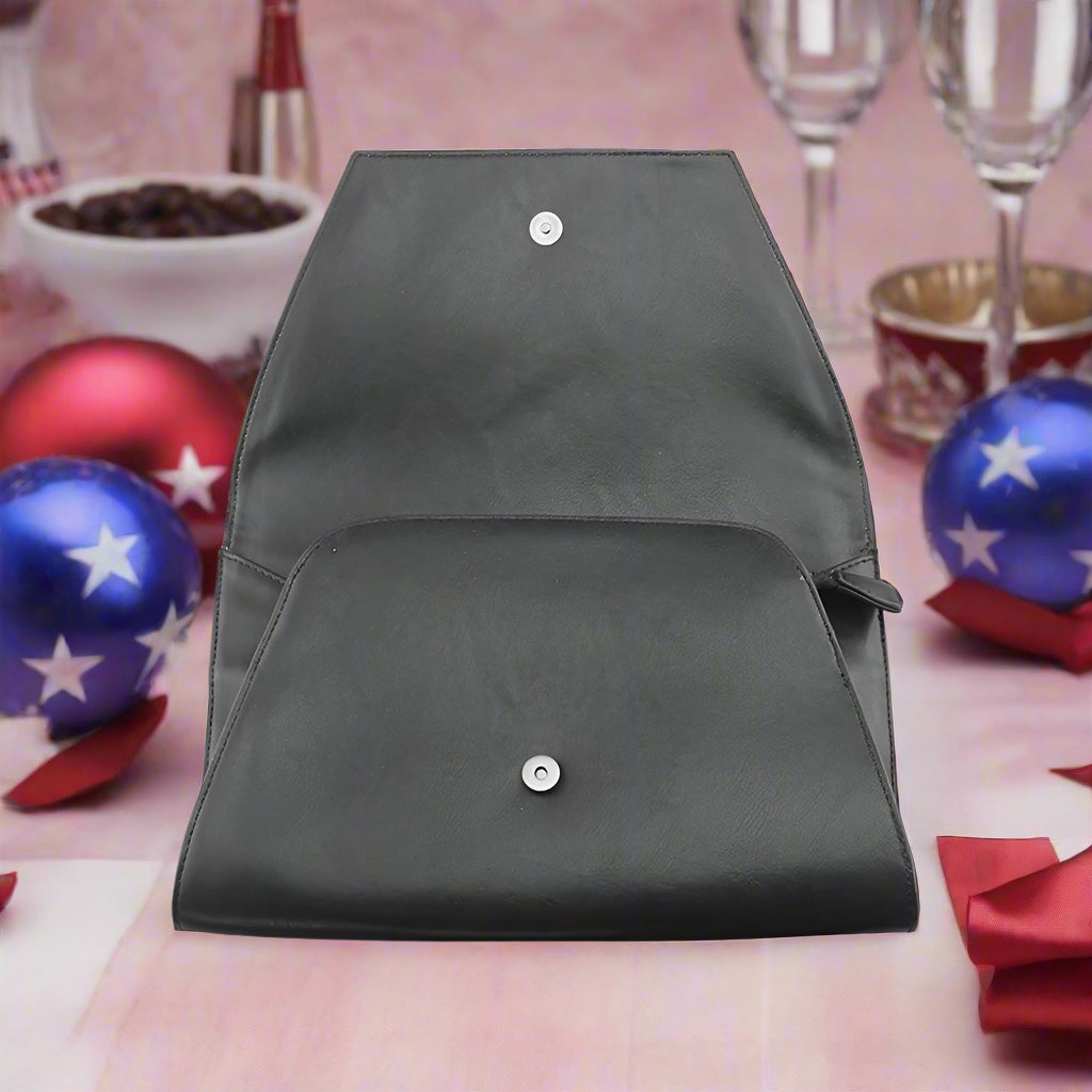 The PGP Holiday State of Bloom Clutch pairs effortless elegance with practical design. Made from a premium animal-free leather alternative, this structured accessory features a sleek magnetic flap and concealed top zipper to secure your essentials with style. The lined interior includes a zippered pocket for organization, making it your go-to for everything from weddings and cocktail hours to travel and everyday glam.