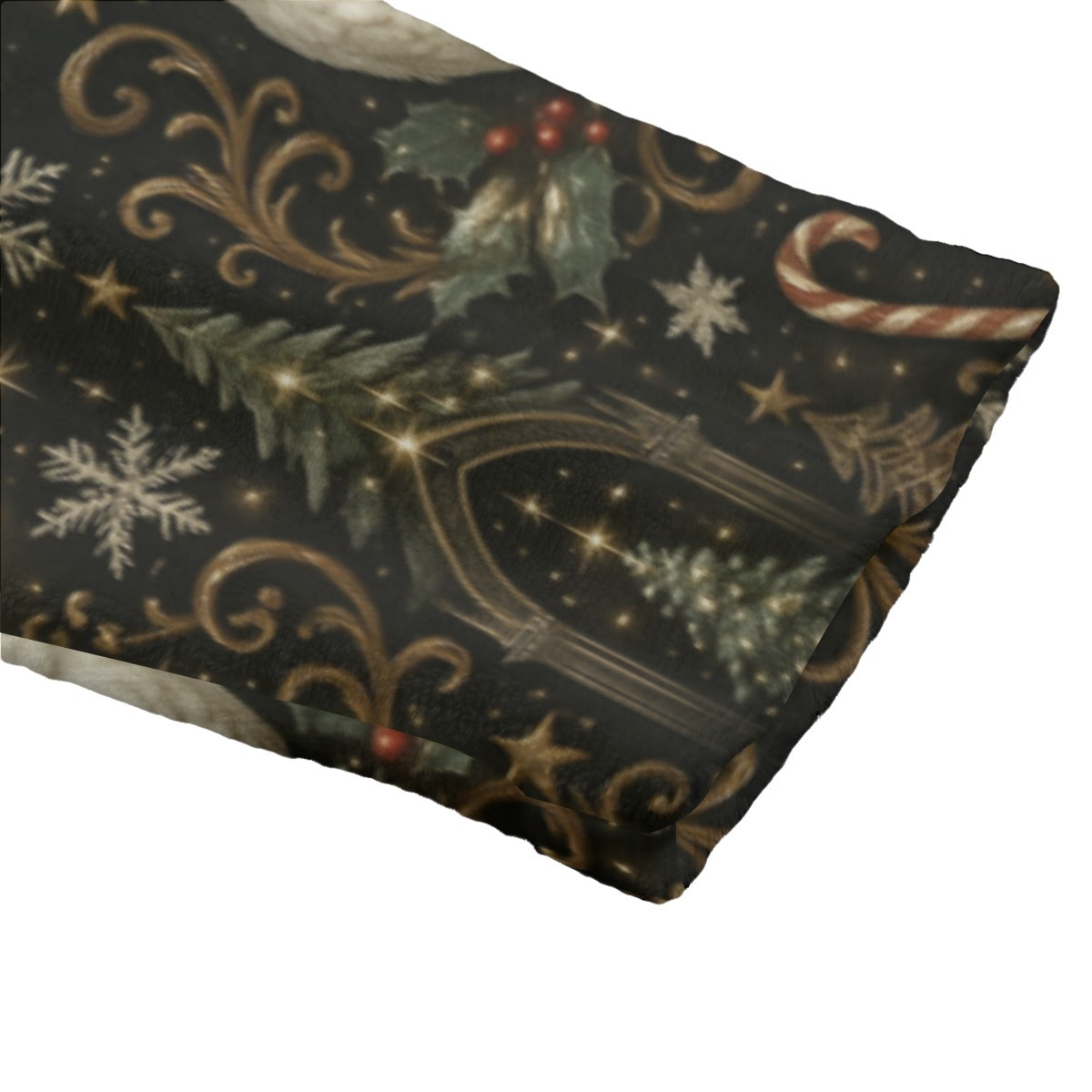 • Features snowy owls, golden swirls, holly, stars, and evergreens