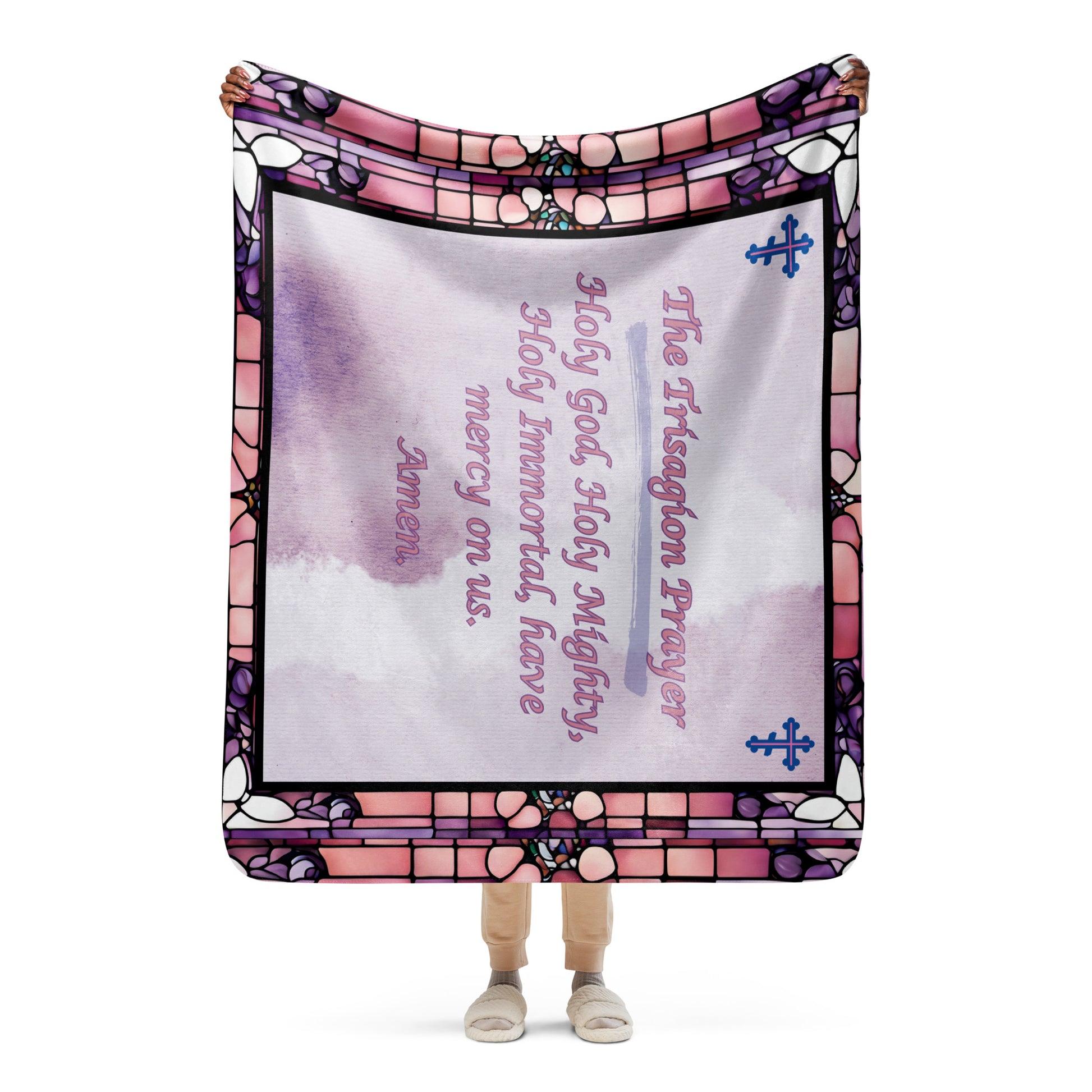 Orthodox Christmas Sherpa Blanket – The Trisagion Prayer, Stained Glass Design