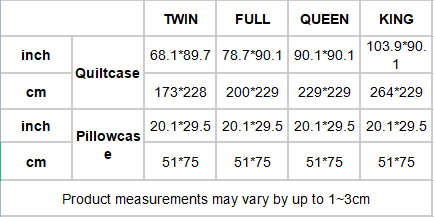 inch | Quilt case | 68.1*89.7 | 78.7*90.1 | 90.1*90.1 | 103.9*90.1 |