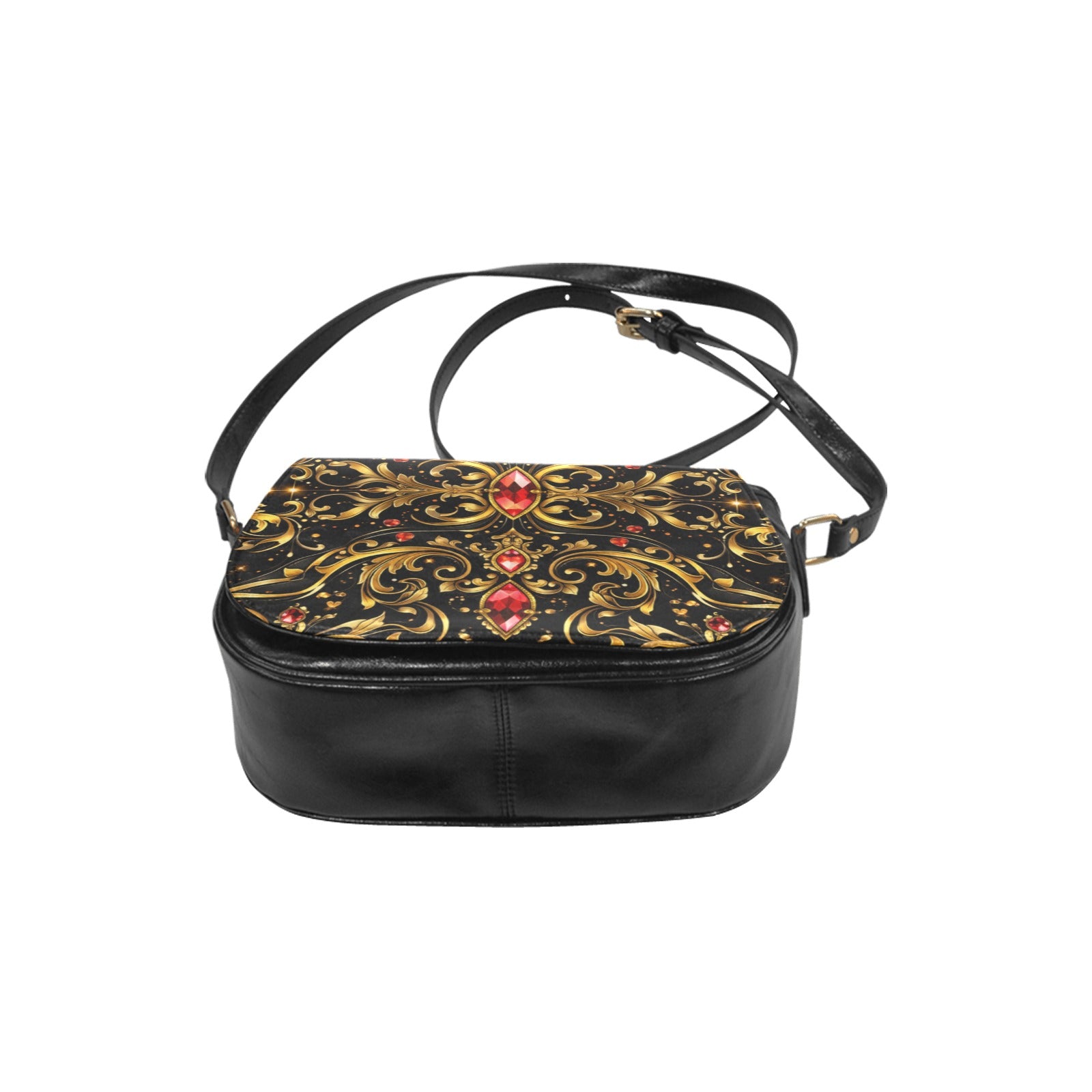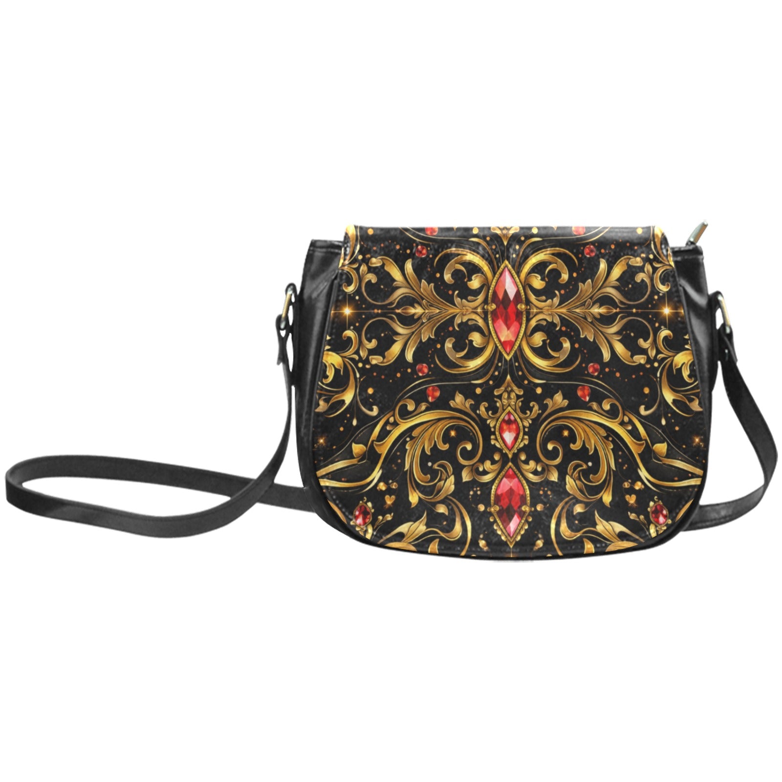 Crafted from high-grade, animal-free leather with a smooth, water- and stain-resistant finish, this compact saddle silhouette balances polish with practicality. Gold-tone hardware adds warmth and contrast, while the flap-front design with magnetic closure keeps the profile clean and secure.