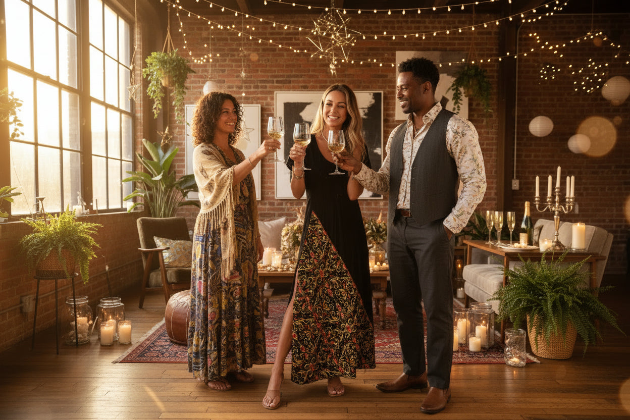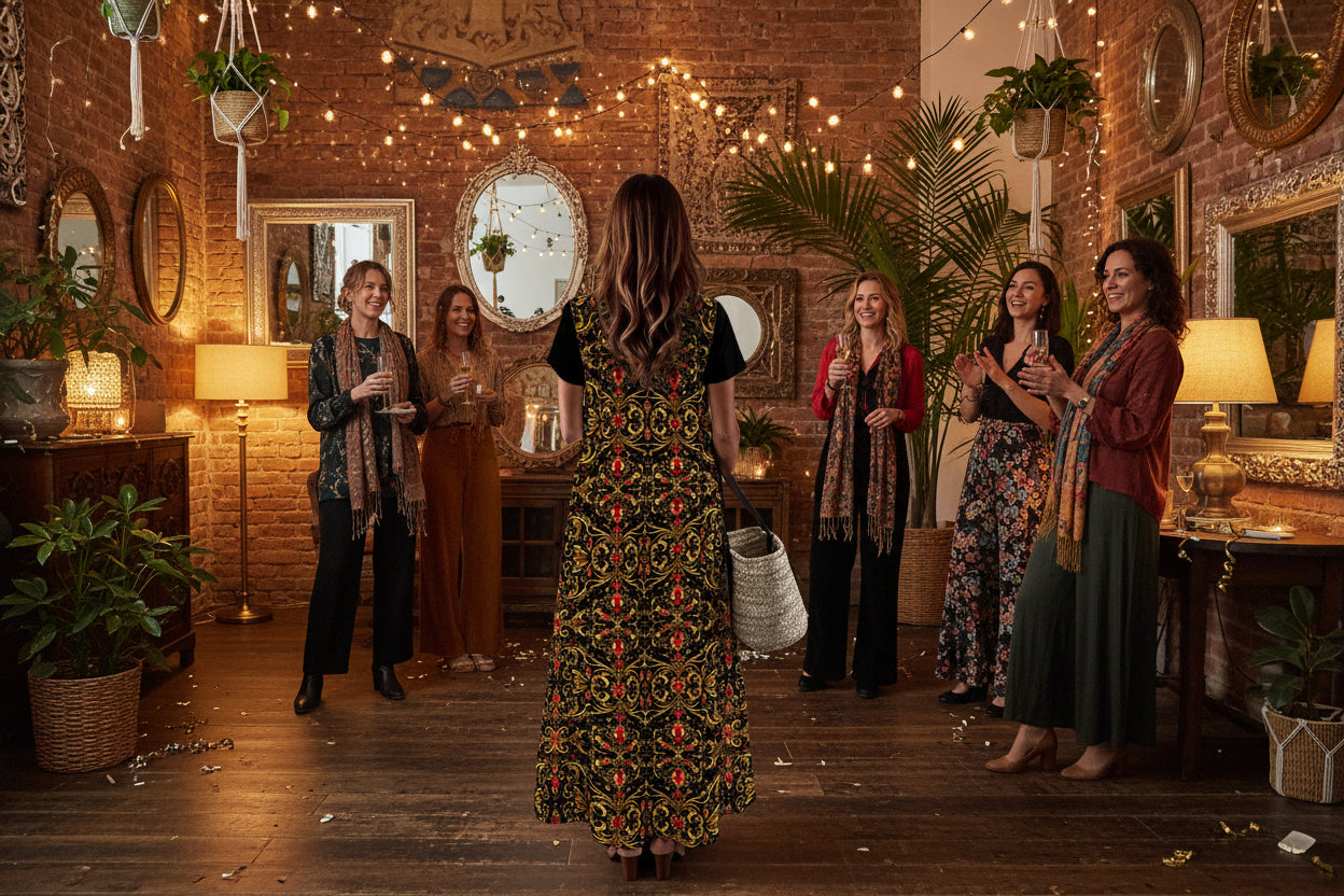 Finished in the Courage palette of ruby and gold, this dress reflects the spirit of the New Year Rule Collection: alignment over effort, confidence without excess.