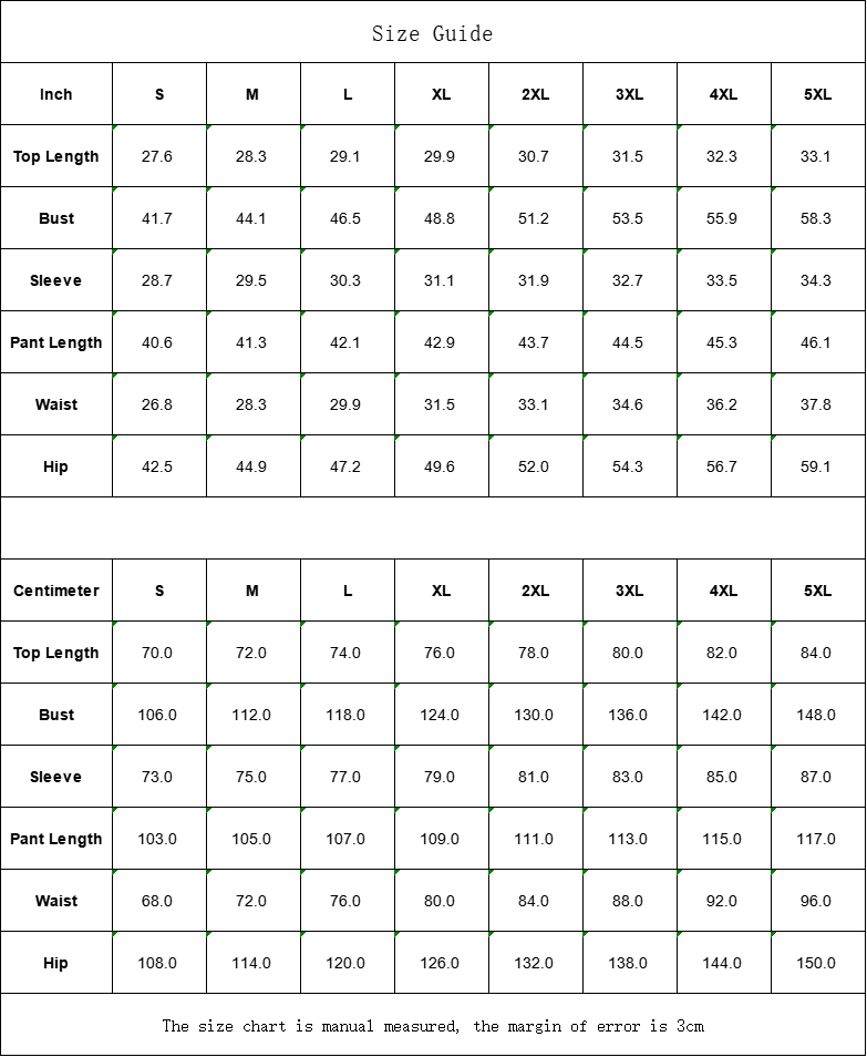 Centimeter | S | M | L | XL | 2XL | 3XL | 4XL | 5XL |