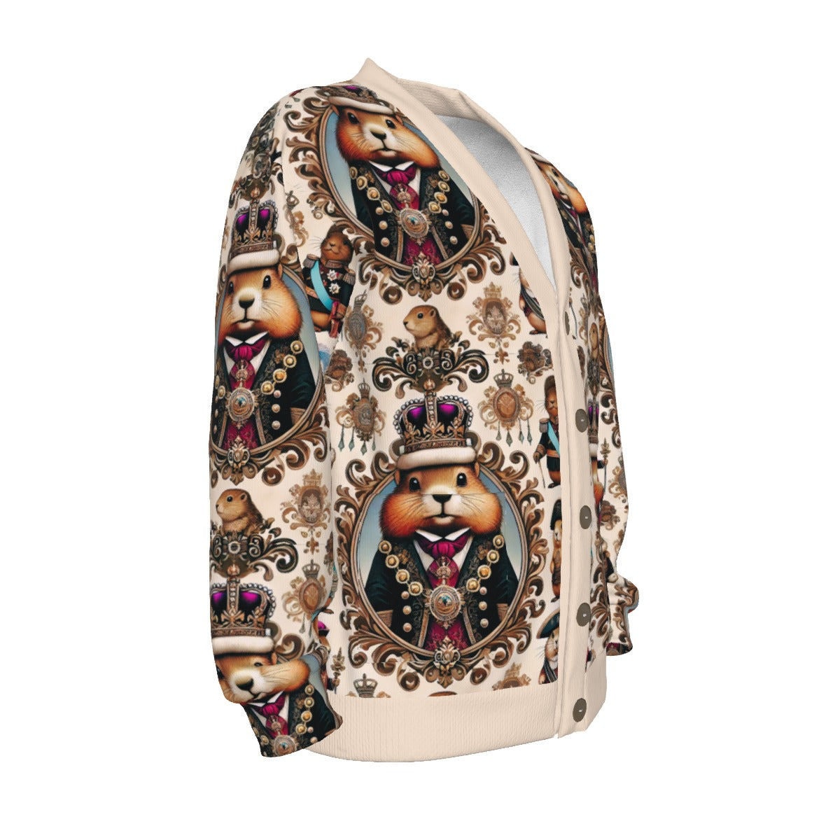 PGP Holiday Groundhog Monarchy Unisex V-Neck Knitted Fleece Cardigan – Classic, Warm & Stylish!