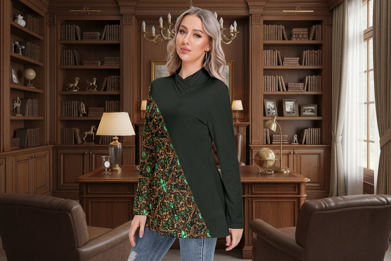 PGP Holiday Growth Long-Sleeve Heap-Neck Tunic Blouse