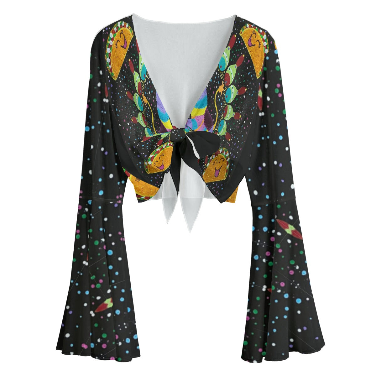 PGP Holiday Margeaux Piñata Cantina Tie Front Flare Sleeve Blouse