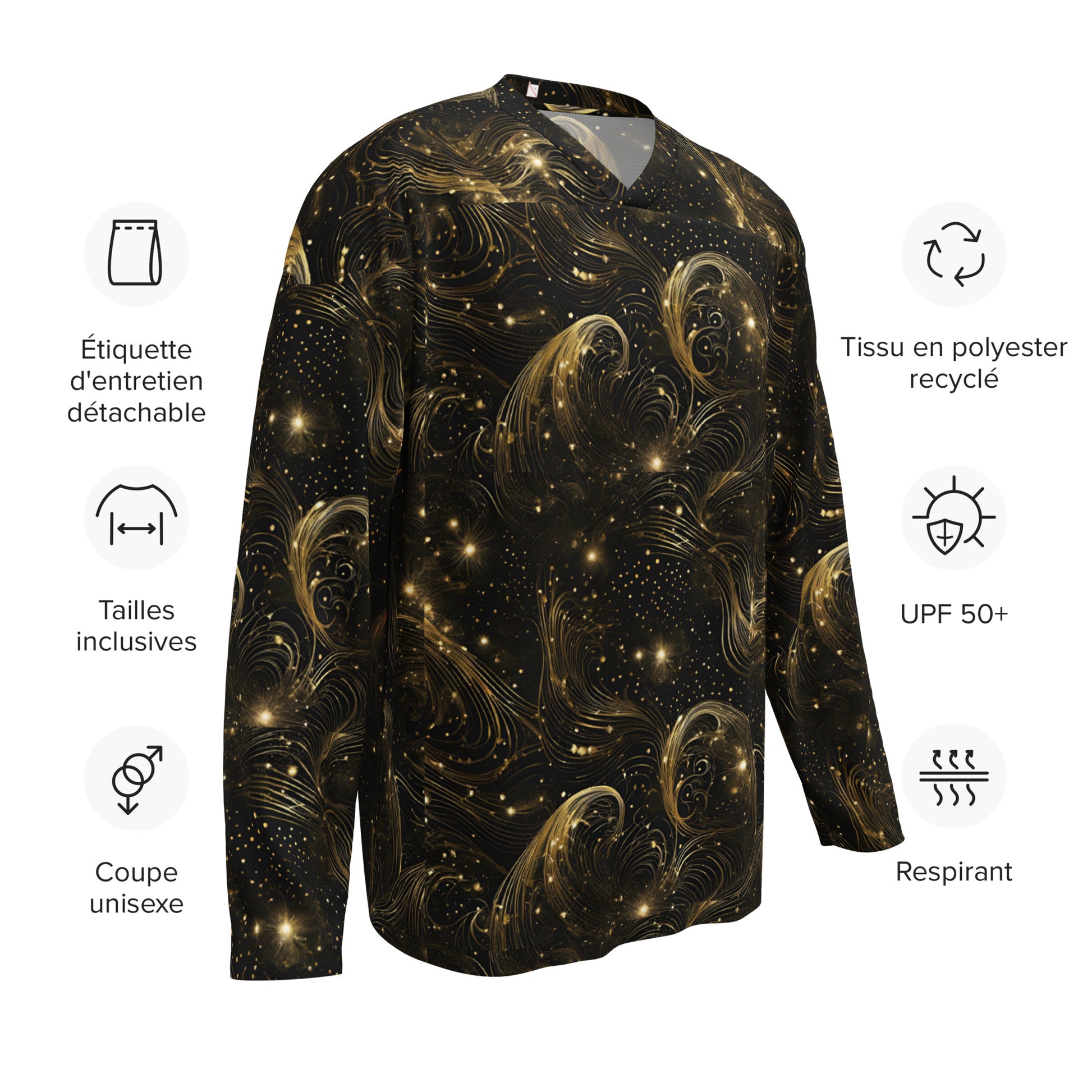 Meticulously crafted with hockey-specific construction for an authentic fan experience, the PGP Holiday Midnight Goldscape Palm Length Comfort Jersey caters to every enthusiast looking to combine festive style with unmatched performance. Made from 100% recycled polyester fabric, this jersey features a lightweight 4.7 oz./yd.² design with two-way stretch for maximum flexibility. Its moisture-wicking material keeps you comfortable during any activity, while the relaxed fit ensures ease of movement. Complete with UPF50+ protection, a rounded shoulder yoke, and a classic V-neck collar, this jersey is both stylish and sustainable, meeting OEKO-TEX 100 and Global Recycled Standard (GRS) certifications. Perfect for celebrating the holidays in comfort and glam.