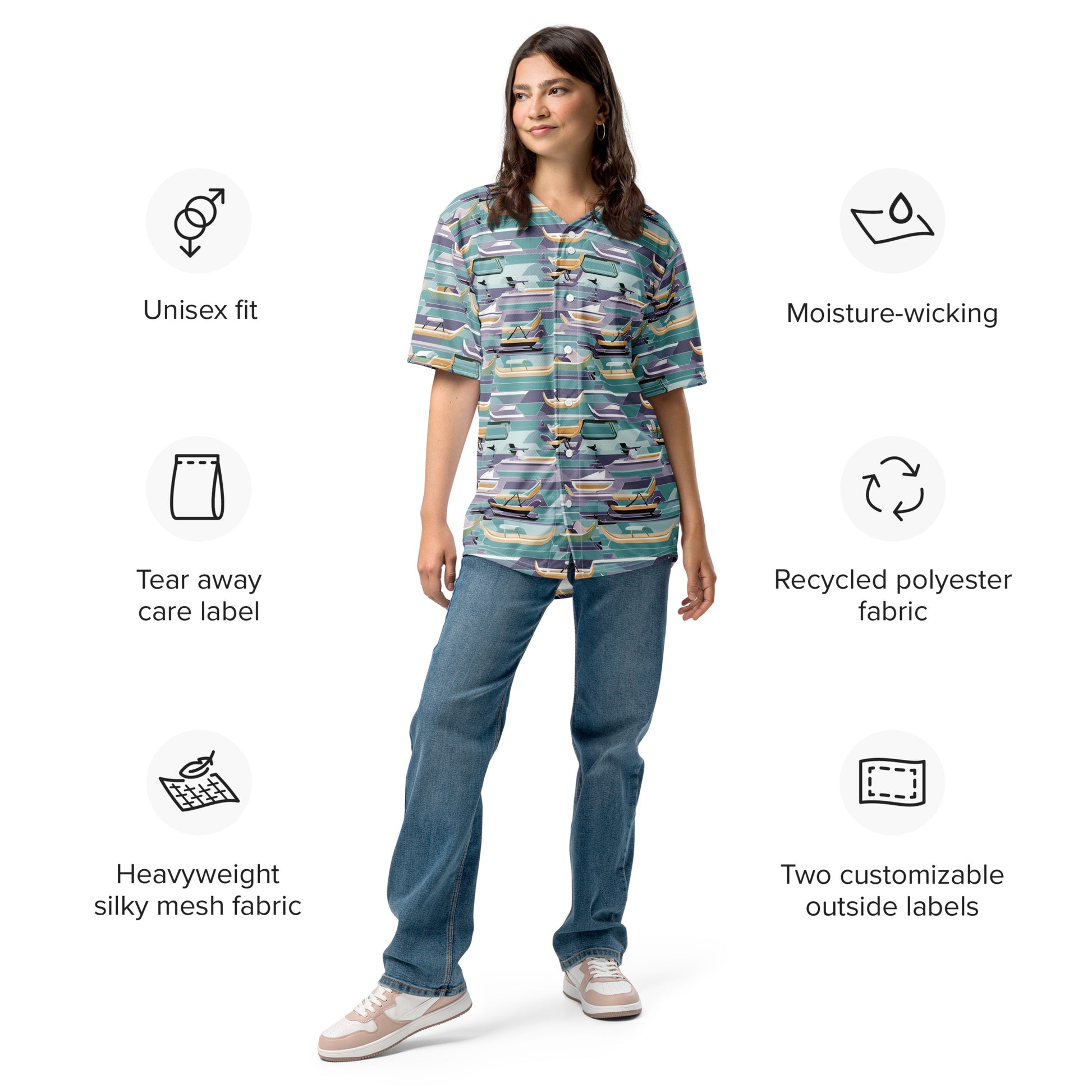 Step up your style with the PGP Holiday Sled Scape Unisex Baseball Jersey, featuring a Mid-Century Modern inspired print. Made from eco-friendly recycled fabric and moisture-wicking material, this jersey ensures all-day comfort. Whether you're cheering for your team or showcasing your sporty street style, this jersey combines fashion with performance for a standout look.